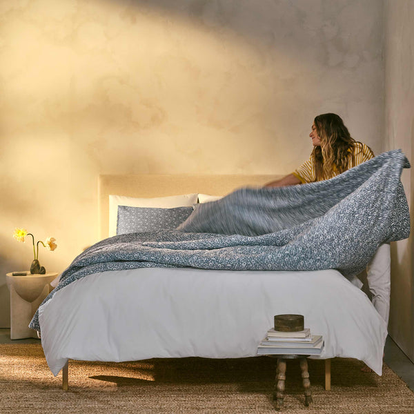 Our Caroline Z. Hurley exclusive Blockprint Quilt is colorful and playful, just like everything the Brooklyn-based painter and textile designer creates. This one-of-a-kind quilt features a botanical block-printed pattern created by stamping over 1,000 times, meaning no two are alike. Made of 100% cotton gauze with a looser and more open weave, this soft, airy layer drapes like a dream.