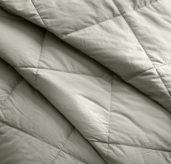 Warmer than a quilt and lighter than a duvet, this bed blanket is our most versatile layering staple. Enjoy the closest feeling to down with PrimaLoft Luxury Down Alternative fill-a premium, hypoallergenic fiber that mimics the weight and gentle loft of down. Both soft and breathable, the durable shell is made from the highest quality 100% organic cotton threads. The linear design features a quilted bafflebox construction that keeps the fill perfectly in place, and is finished with decorative details.