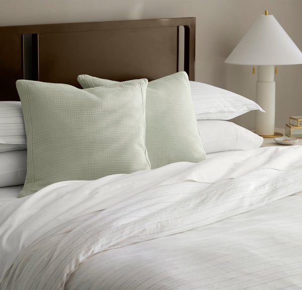 With a casual style and cloud-like touch, this Euro Sham offers an exceptionally soft and inviting feel to your bedroom aesthetic. Its unique design starts with 4 lightweight layers of ultra-fine organic cotton, all pre-shrunk to bring natural folds with a distinct texture to each piece. Dyed and washed to give the fabric its subtle tonal gradient, this laid-back design brings the perfect finishing touch to your top of bed or living spaces.