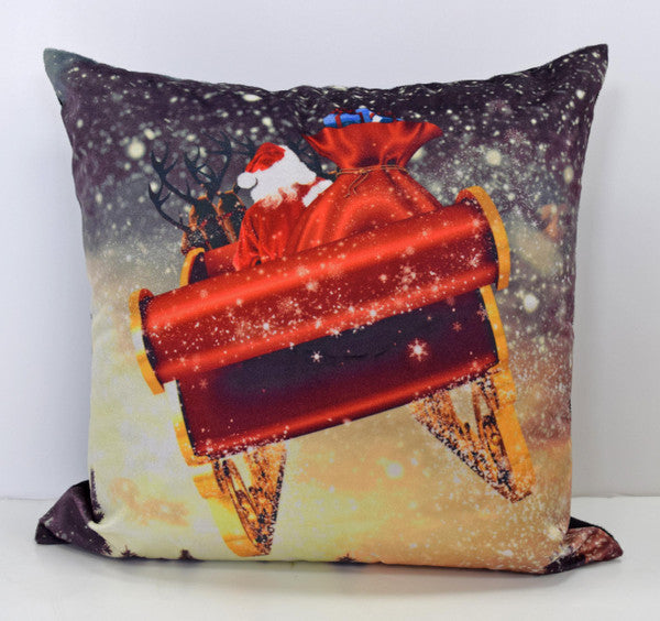 Bring the magic of christmas into your home with this enchanted flying santa and sparkling tree scene photographic cushion cover. Printed on luxuriously soft velvet.