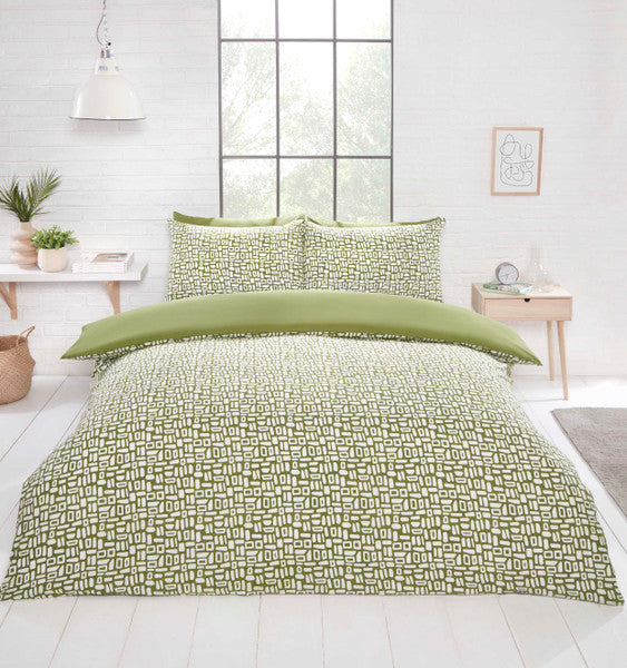 Our So Soft printed bedding range is perfect for a great night's sleep. Cosy and gentle against your skin, made with 180 thread count microfibre, making it non-iron and also durable. This design features an all over retro abstract geometric with a matching plain dyed reverse. Available in 2 colours, green or blue.