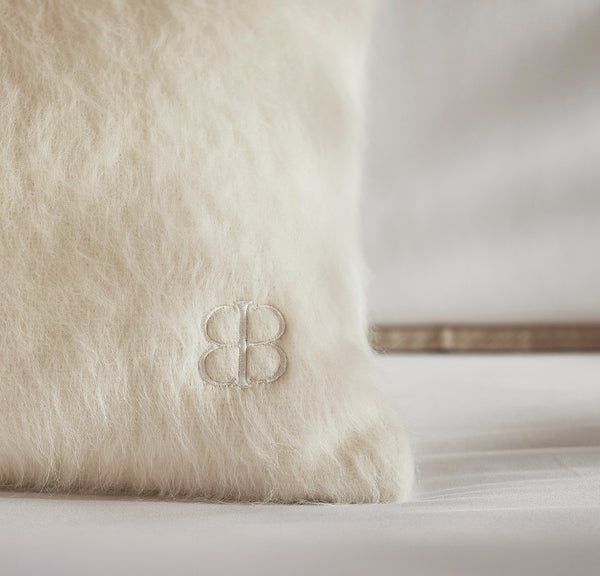 This limited-edition pillow cover is delicately imbued with verite-a celebration of authentic artistry and time-honored craft. We partnered with master weavers in Peru to draw out the raw beauty and softness of Suri alpaca and Merino wool, for an undeniably luxurious statement piece. Brushed to enhance its natural loft and luster, it is finished with our iconic monogram in elegant embroidery.