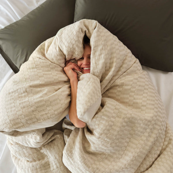 Check, mate. Our Woven Checkerboard Duvet Set adds lightweight texture and subtle modernity. A cotton and linen blend front + a crisp percale back = the best of both worlds.How It LooksLightweight. Textured. Welcoming.How It FeelsSoft. Relaxed. Breathable.